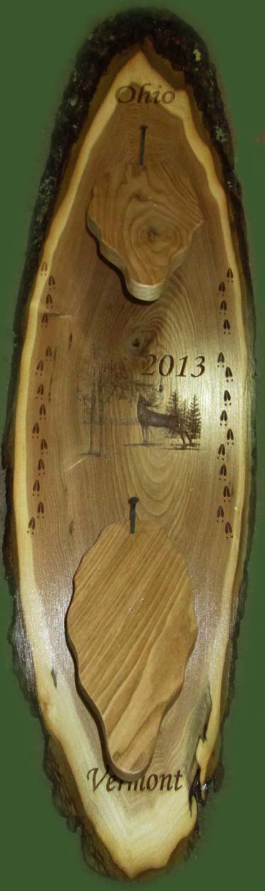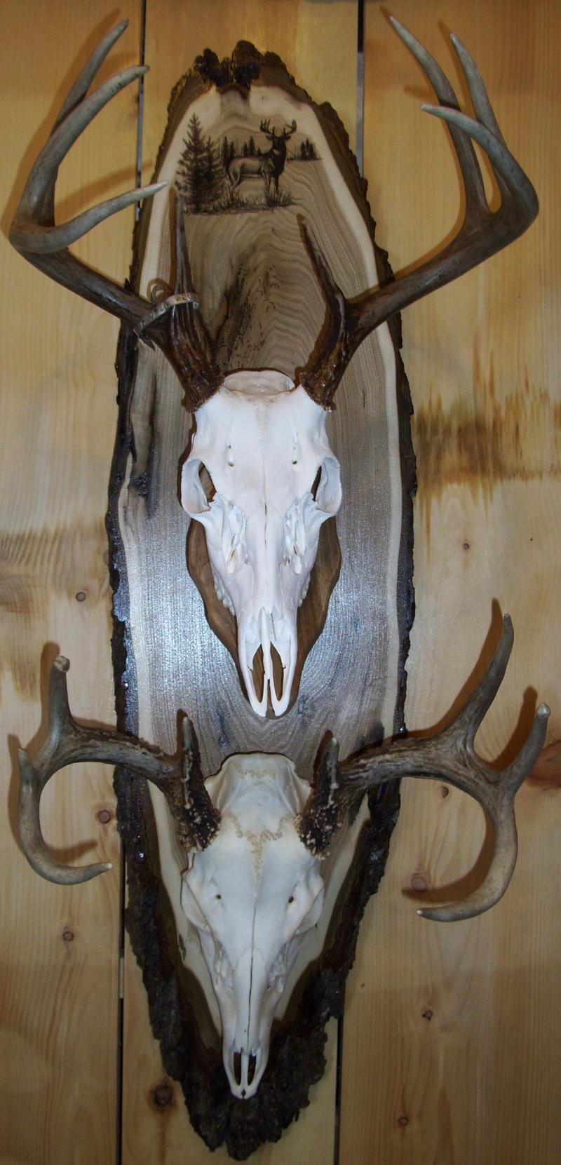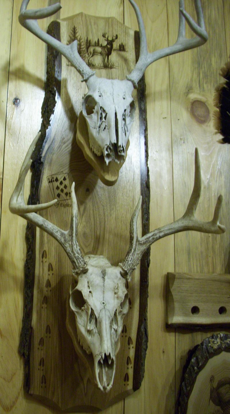 We wanted to create something "different"...a different option from the old fashioned "badge plaques" to mount your trophy animals, birds, and fish! We wanted to create a board keeping the bark on and then engraving the most true to life images we could find. We couldn't find any so we have a few artists hand draw them for us to use in our programs!